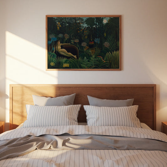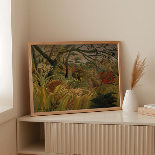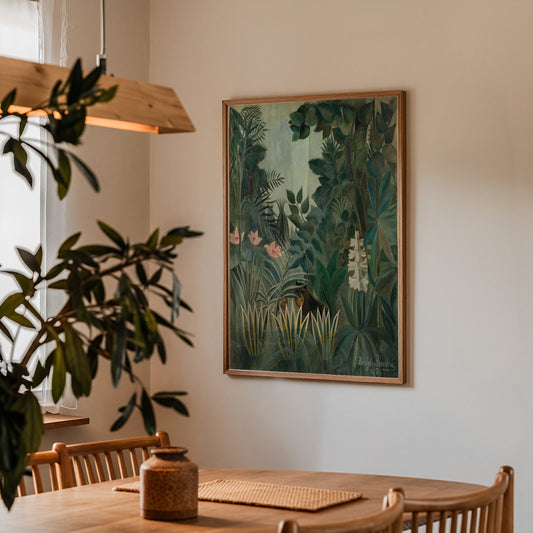 Step into the whimsical, dreamlike worlds of Henri Rousseau, the self-taught master of imaginative landscapes and exotic jungles. Known for his bold colors, flat perspectives, and fantastical scenes, Rousseau’s art, like The Dream and Tiger in a Tropical Storm, blends innocence with mystery.