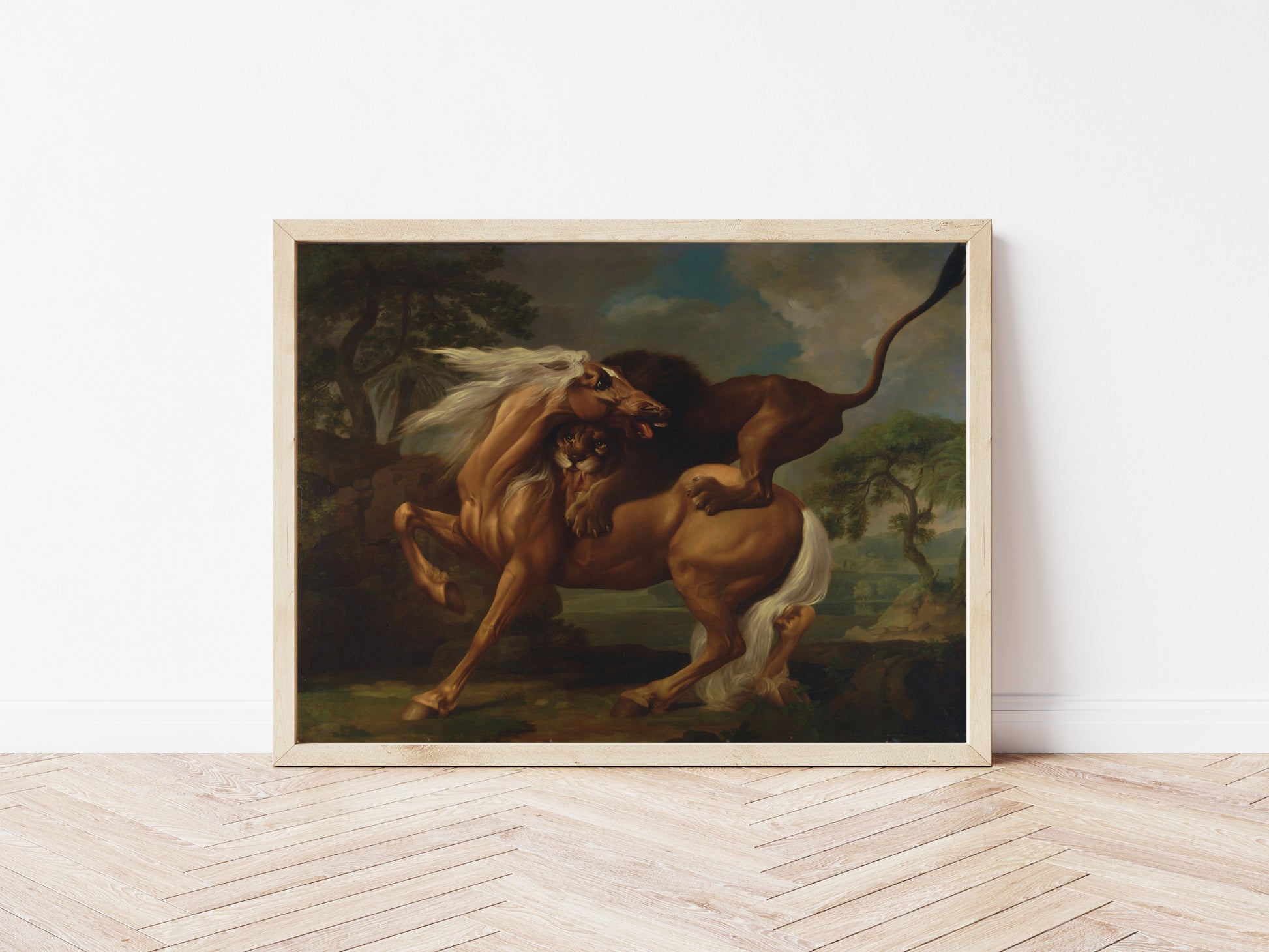Experience the dramatic intensity of A Lion Attacking a Horse by George Stubbs, a stunning juxtaposition of strength and vulnerability. The dynamic composition captures a fierce moment in nature, highlighting the muscular forms of both the lion and the horse amidst an idyllic landscape. Stubbs, renowned for his masterful depiction of animal anatomy, infuses this artwork with a sense of urgency and raw emotion, transporting viewers into a visceral encounter. This piece not only celebrates the beauty of wildlife but also serves as a poignant reminder of the relentless forces of nature and survival. Ideal for lovers of 18th-century British art, this print makes a striking statement piece for any art collection.