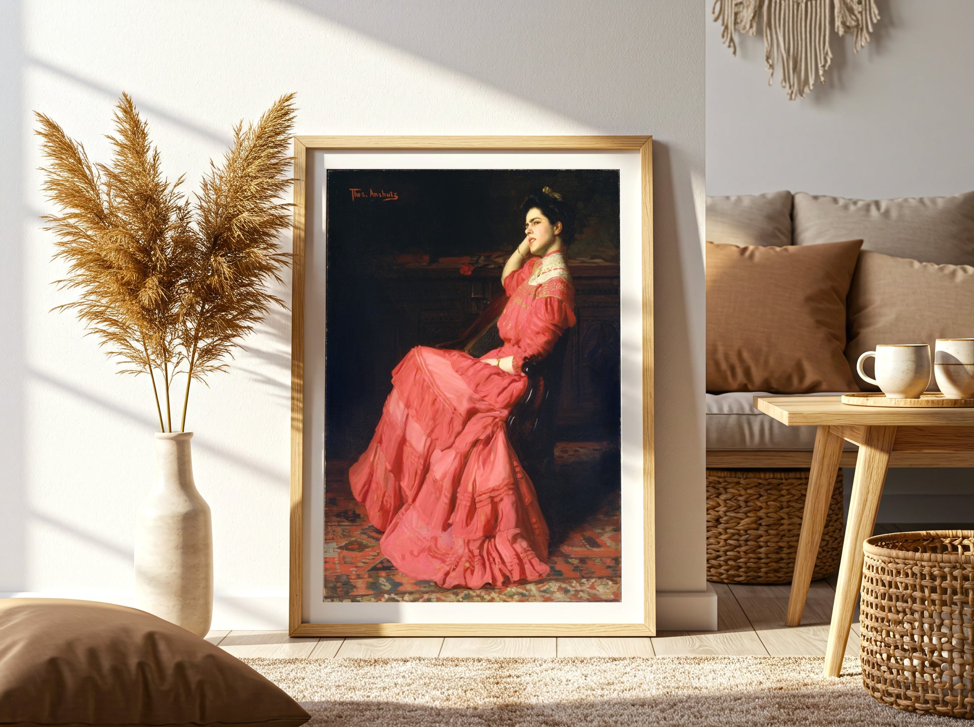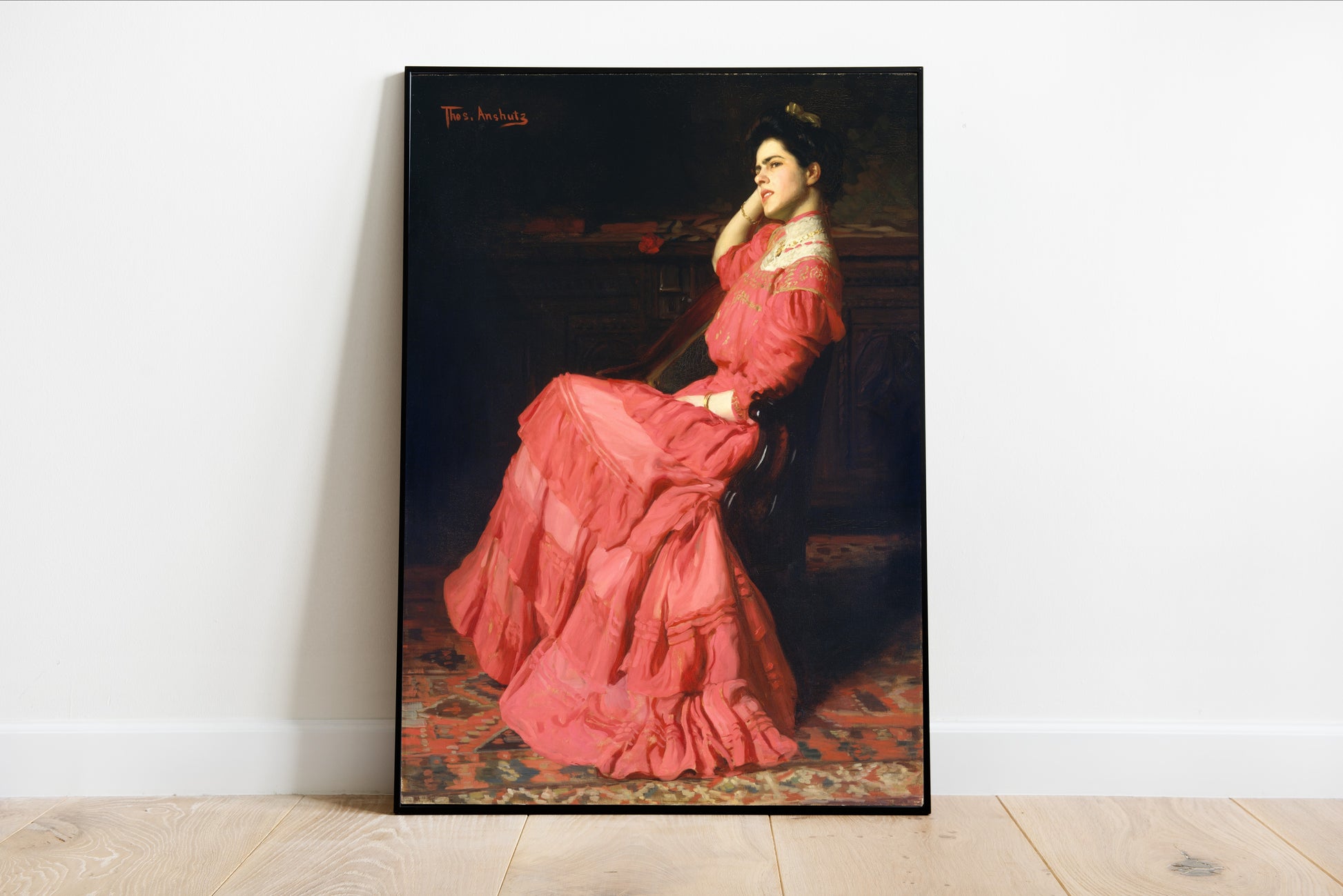 Immerse yourself in the exquisite beauty of A Rose by Thomas Anshutz, where a striking interplay of rich colors and elegant textures comes to life. The vibrant pink gown draped gracefully around the seated figure radiates a sense of poise and femininity, making this portrait a striking homage to the charm of late 19th-century American art. Anshutz’s masterful brushwork captures not only the fabric's intricate layers but also the contemplative expression of the woman, inviting the viewer to ponder her thoughts. This captivating piece embodies the essence of realism, an art movement that sought to depict subjects in their true form, free of embellishment. Anshutz, known for his attention to detail and emotional depth, encapsulates a moment of introspection that resonates across time, making this print a timeless addition to any art collection. Whether for those appreciating historical elegance or lovers of fine portraiture, A Rose is a stunning statement piece that enriches any wall with its vibrant character.