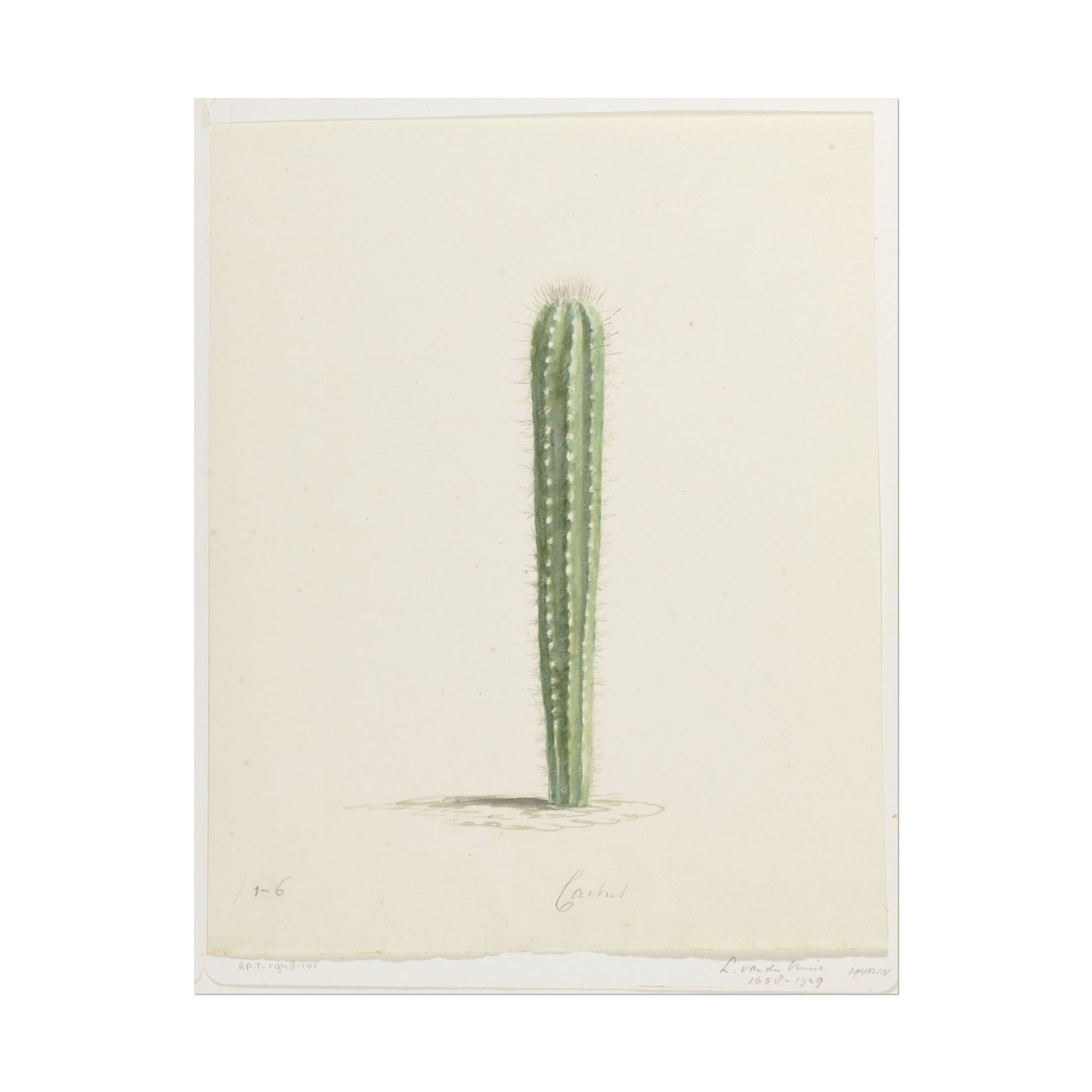 Immerse yourself in the serene beauty of "Cactus Botanical" by Laurens Vincentsz van der Vinne, a captivating exploration of botanical illustration that showcases the mastery of fine detail and subtle color. The vertical composition of the cactus, elegantly rising against a soft, neutral backdrop, evokes a sense of tranquility and strength. Van der Vinne’s meticulous rendering captures the fine textures and delicate structures of the plant, inviting contemplation of the resilience inherent in nature. This piece stands as a testament to the enduring beauty of flora, perfect for those who appreciate the harmony of nature and art. As a representative of 19th-century botanical art, this print reflects the period's fascination with detailed natural studies and the rise of scientific illustration. Van der Vinne's work encapsulates the essence of a moment in time where art and science intersect, making it a fitting addition to any space that seeks to cultivate a sense of peace and connection to nature.