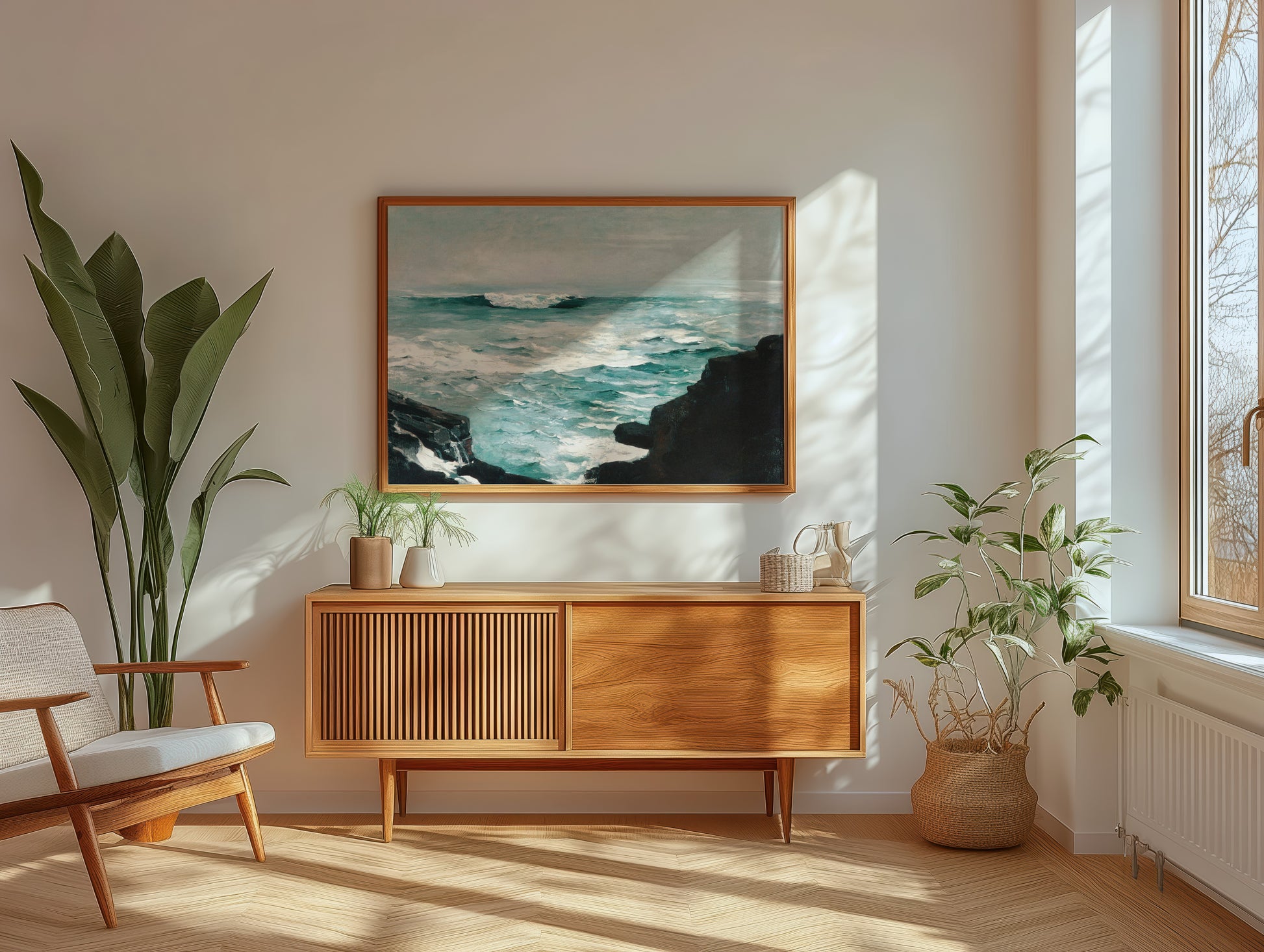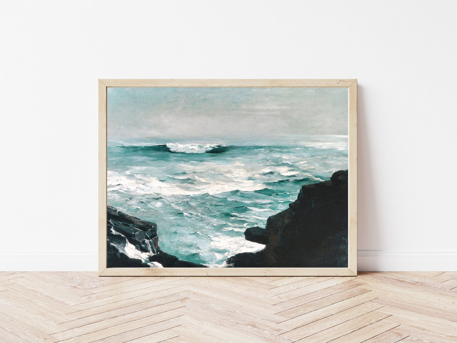 Immerse yourself in the striking coastal scene of Cannon Rock by Winslow Homer, a remarkable portrayal of turbulent ocean waves crashing against rugged cliffs. The painting masterfully captures the vivid interplay of deep blues and frothy whites, evoking a sense of both serenity and the raw power of nature. Homer's keen eye for detail and emotional depth reveals the beauty of the ever-changing sea, making this piece emblematic of 19th-century American Realism. Ideal for admirers of seascapes and maritime art, Cannon Rock serves as a window into the artist's profound connection with the natural world.