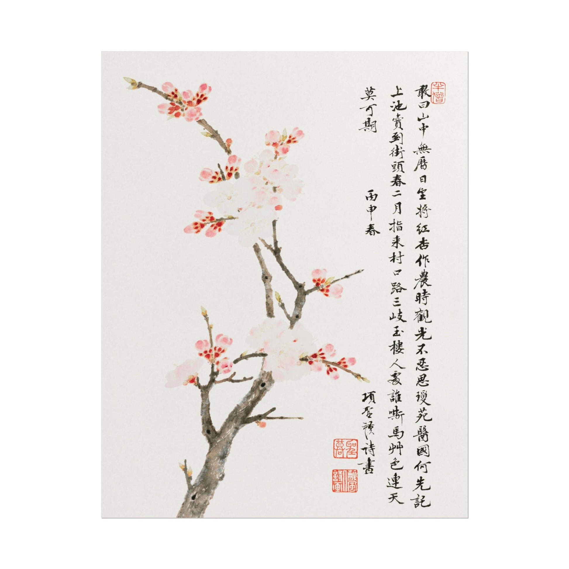 Immerse yourself in the delicate beauty of Chinese Cherry Blossom by Xiang Shengmo, where pastel petals dance gracefully on gnarled branches. This exquisite piece evokes a serene atmosphere, encapsulating the fleeting nature of springtime, a theme deeply embedded in traditional Chinese art. The soft washes of pink and subtle strokes reflect a masterful blend of naturalism and expressionism, celebrating the harmonious relationship between nature and humanity. Shengmo’s botanical art captures the essence of renewal and beauty, making it a perfect addition to any art lover's collection.