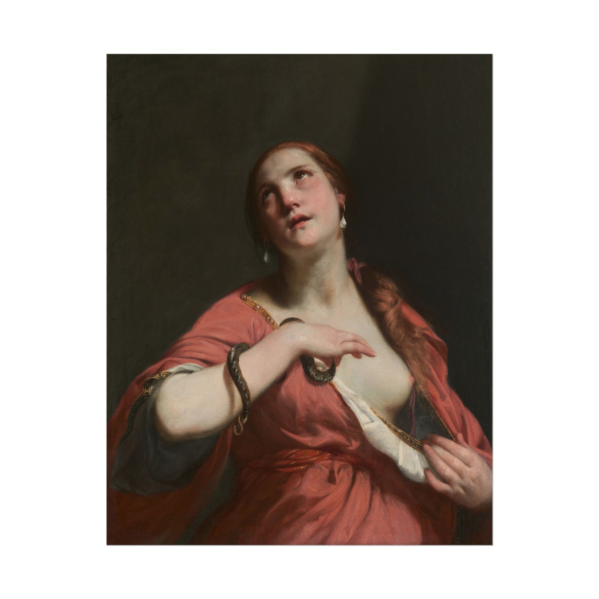 Experience the dramatic allure of Cleopatra through the masterful brushwork of Caravaggio, a pioneer of Baroque art. With her piercing gaze and expressive pose, this captivating figure embodies both strength and vulnerability, rendered in rich, earthy tones that draw the viewer into her world. The contrast between light and shadow not only enhances her ethereal beauty but also evokes a timeless tension, symbolizing the duality of her power and seduction. Caravaggio's unique approach to composition and emotional depth brings a contemporary relevance to this historical figure, making it an exquisite statement piece for any art lover.