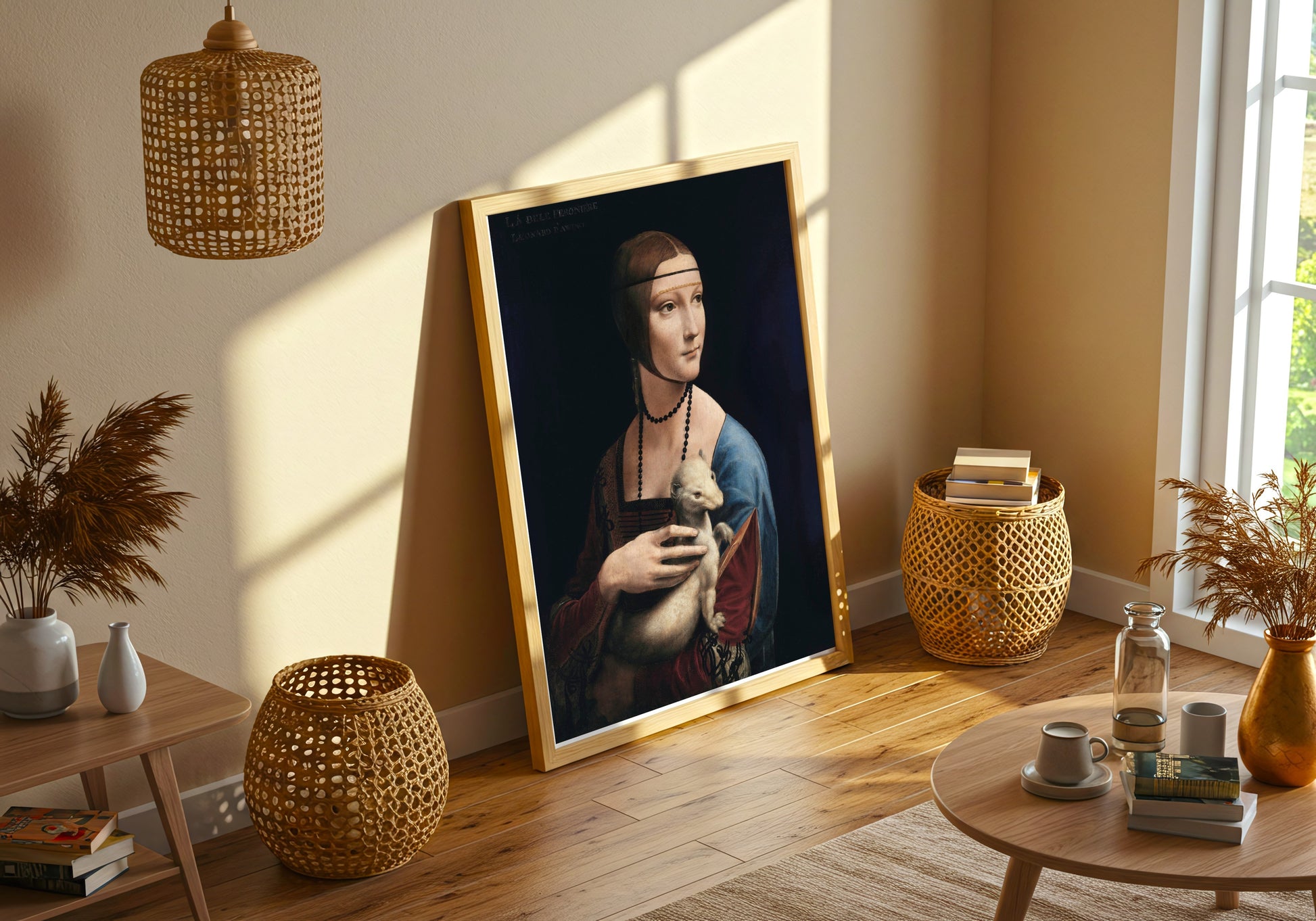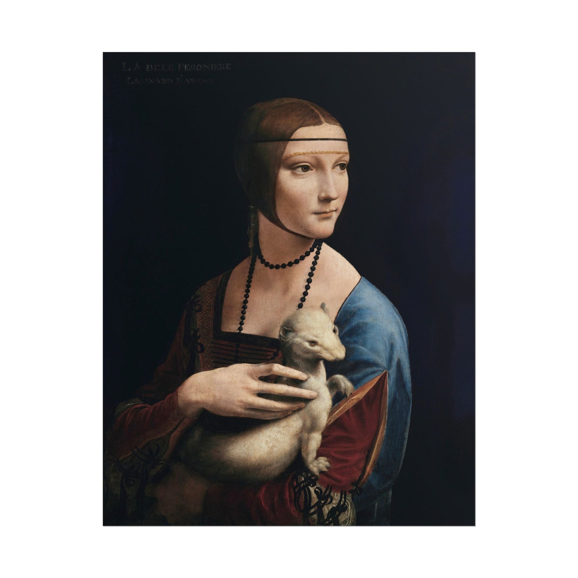 Discover the captivating elegance of "Lady with an Ermine" by Leonardo da Vinci, a stunning portrait that encapsulates the harmony of beauty and sophistication. The subject’s serene expression, set against a rich, dark background, draws the viewer into her world, while the delicate ermine nestled in her arms symbolizes purity and grace. Da Vinci's masterful use of chiaroscuro highlights the soft contours of her face and the luxurious texture of her garments, showcasing his unparalleled skill in capturing human emotion and personality. This piece not only exemplifies the High Renaissance's emphasis on individualism but also serves as a lasting testament to the artist's profound understanding of the interplay between light and shadow. The composition invites contemplation, merging vulnerability with strength as the lady gazes thoughtfully into the distance. Each brushstroke is infused with life, transporting you to a moment in time filled with intrigue and refinement. This iconic artwork is a perfect addition for lovers of classical art and those who appreciate the timeless allure of da Vinci's genius.
