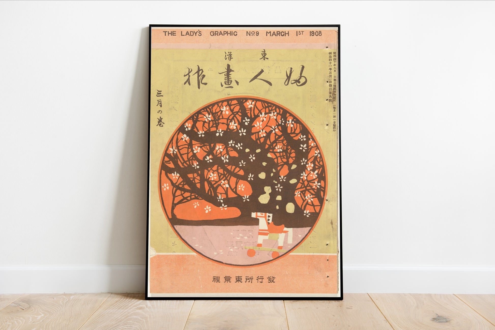 Immerse yourself in the enchanting world of Japanese printmaking with Maart 1908, a captivating collaboration by Kosugi Misei and Ikeda Shôen. This vibrant print features a beautifully stylized depiction of an intricately gnarled tree, adorned with delicate blossoms against a backdrop of warm earthy tones. The circular composition creates a sense of harmony and tranquility, inviting the viewer to reflect on the fleeting beauty of nature. The soft color palette, featuring rich oranges and deep browns, evokes a serene mood, characteristic of the Shin hanga movement that sought to merge traditional aesthetics with modern sensibilities. This exquisite piece serves not only as a visual delight but also as a testament to the artistry and cultural depth of early 20th-century Japan.