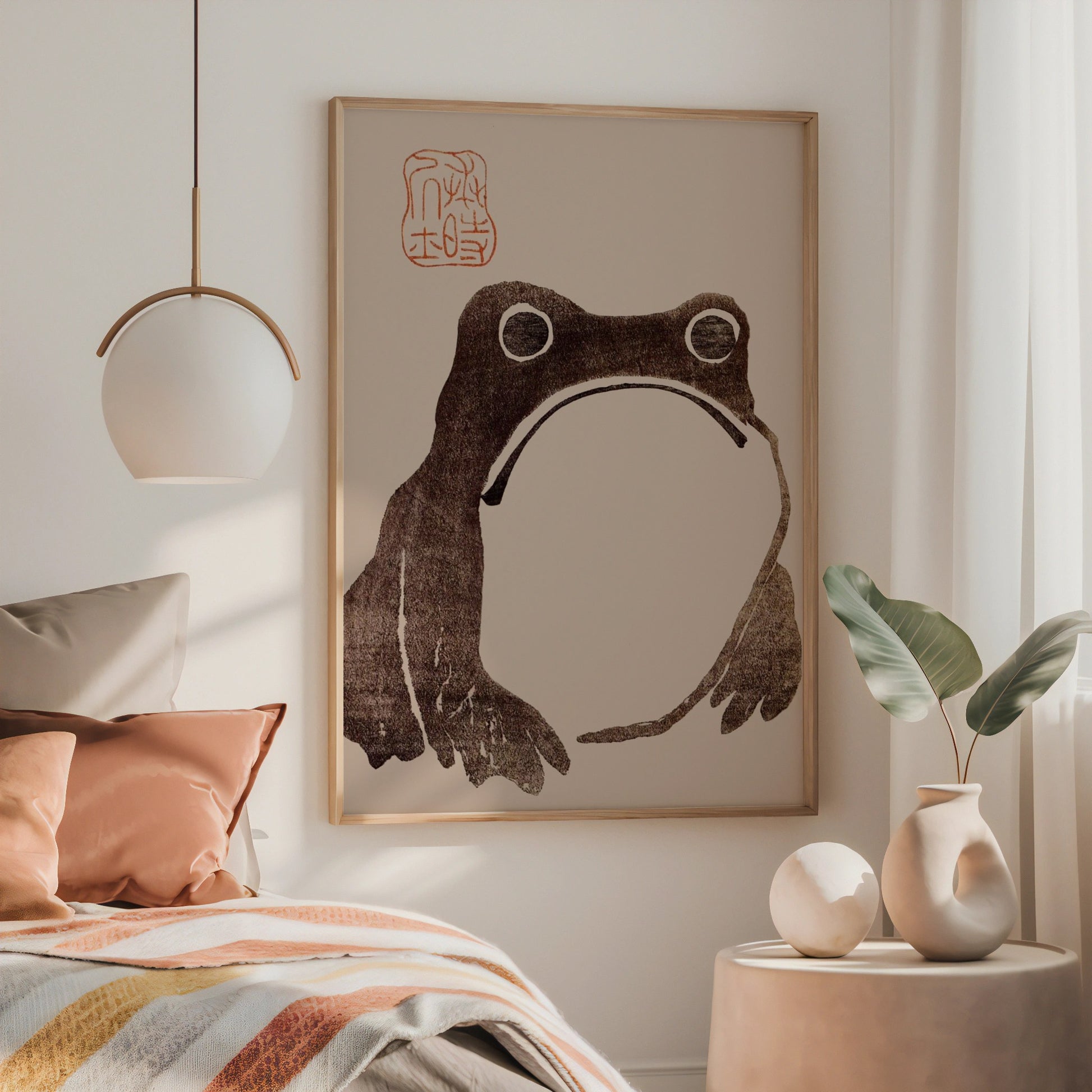 Celebrate the charm of imperfection with Frog by Matsumoto Hoji, a whimsical Japanese woodblock print that embodies the spirit of wabi-sabi—finding beauty in the natural, the aged, and the imperfect. This antique-style frog art balances playfulness and subtle elegance, capturing the unique “ugly cute” aesthetic that makes it a standout piece in both traditional and modern settings. A perfect blend of Japanese art, abstract sensibility, and vintage appeal, it’s ideal for lovers of quirky yet meaningful decor.