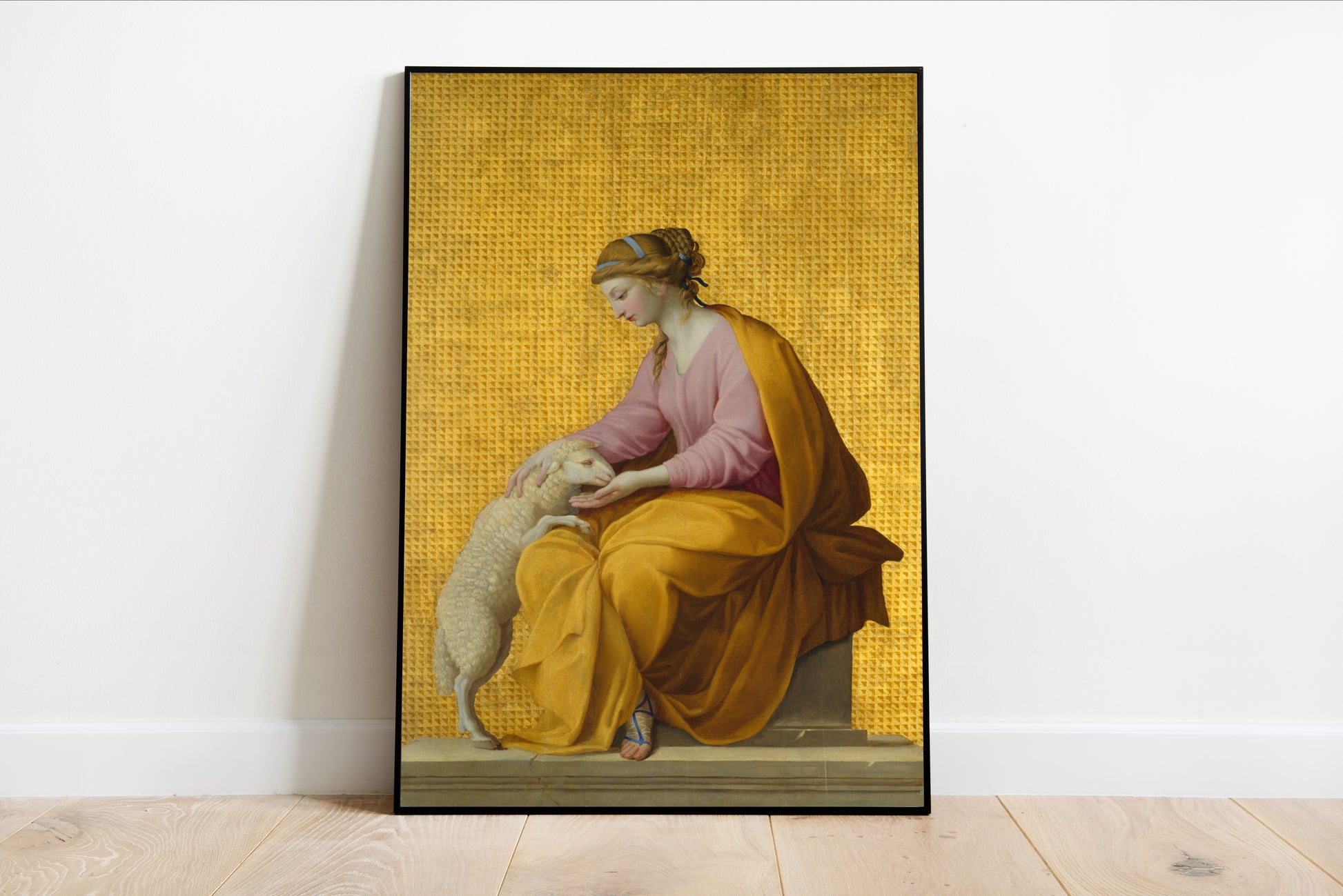Experience the serene grace of Meekness by Eustache Le Sueur, a captivating work that embodies the beauty of tenderness and humility. In this exquisite portrayal, a gentle figure is depicted in soft hues of pink and yellow, cradling a lamb, symbolizing purity and innocence. The harmonious composition, set against a rich golden backdrop, evokes a sense of calm and introspection, inviting viewers to reflect on the virtues of compassion and gentleness. As a significant figure in the French Baroque period, Le Sueur's ability to blend emotional depth with masterful technique shines through, making this piece a timeless treasure. Perfect for those who appreciate religious symbolism and the gentle nuances of human connection.