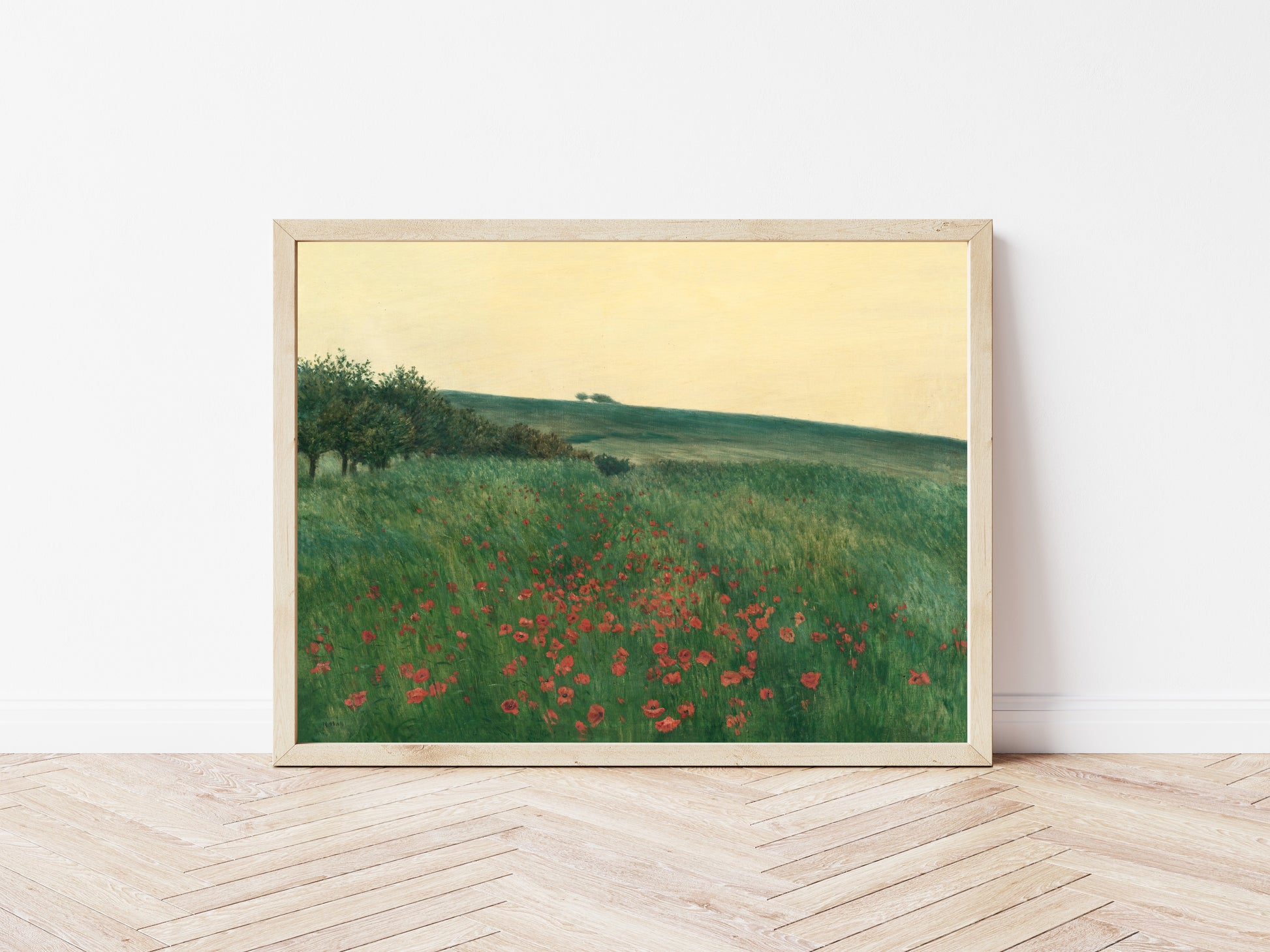Immerse yourself in the serene beauty of Red Poppies by František Kaván, a captivating work that brings forth the gentle touch of nature through its lush, vibrant landscape. The foreground is a luscious sea of crimson poppies, their vivid hues contrasting beautifully against the soft greens of the surrounding grass. Kaván’s meticulous brushwork and attention to detail invite the viewer to linger in this tranquil setting, evoking a sense of peace and quiet reflection. The horizon stretches gracefully across the canvas, suggesting a moment at dusk when nature breathes in calmness and beauty. This exquisite piece serves as a stunning tribute to the charm of rural life and the vitality of the natural world. Kaván, known for his intimate landscapes, has a unique ability to instill emotion through his compositions, making this print a perfect addition for lovers of Impressionism and natural beauty. Experience the harmony of color, form, and mood in Red Poppies, a masterpiece that not only enhances your space but also celebrates the fleeting beauty of life’s simplest moments.