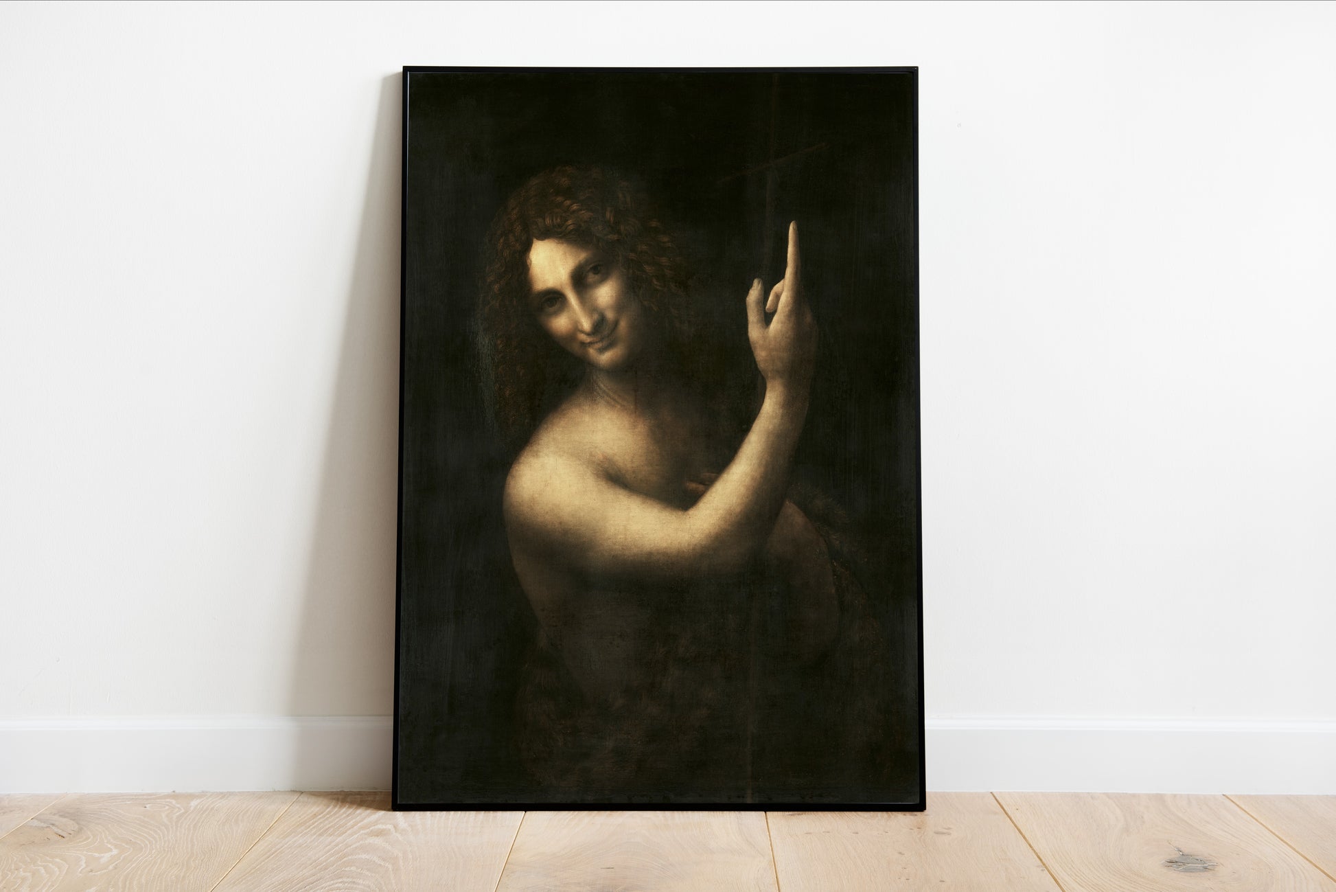 Experience the enigmatic beauty of Saint John the Baptist by Leonardo da Vinci, a captivating fine art print that embodies the essence of the Renaissance. This masterpiece presents a striking, half-figure of John, shrouded in shadows that enhance the spiritual intensity of the subject. With a soft yet expressive gaze, da Vinci masterfully captures the saint’s serene confidence, inviting viewers to reflect on themes of faith and revelation. The dramatic chiaroscuro and subtle color palette reveal the artist's innovative approach to light and form, marking this work as a quintessential example of Renaissance artistry. Ideal for collectors and aficionados of classical religious iconography, this print is sure to elevate any art collection.