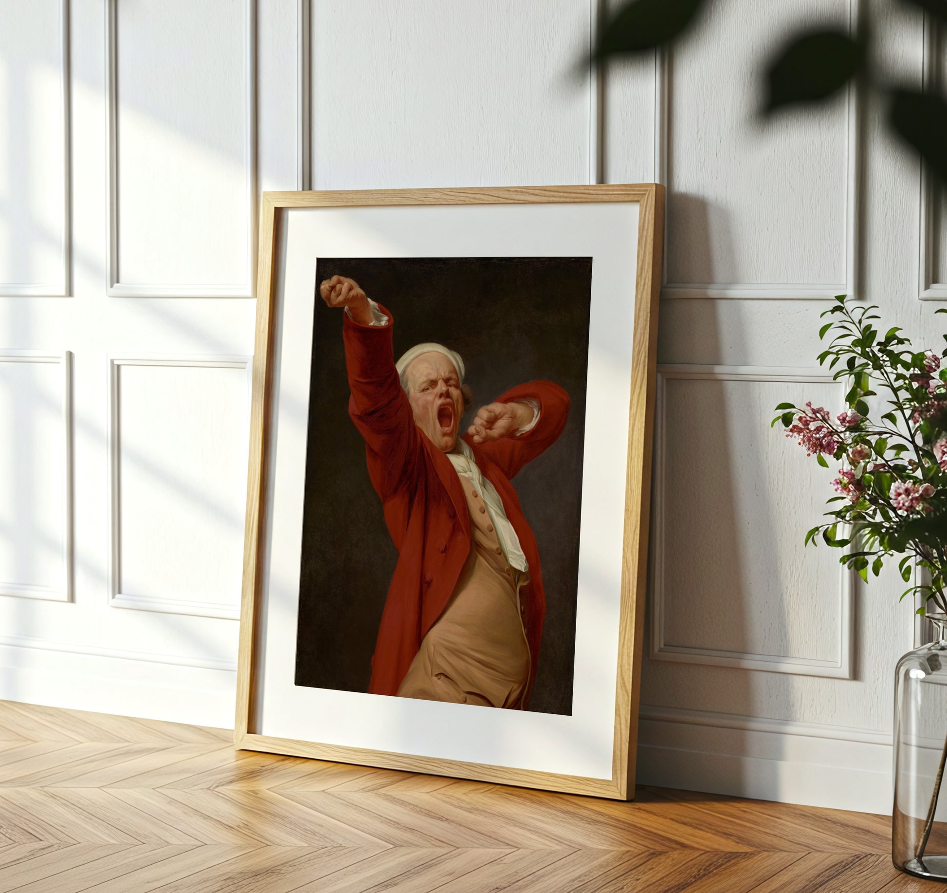 Experience the engaging charm of Self-Portrait Yawning by Joseph Ducreux, where an exaggerated expression and dynamic pose invite viewers into the artist's world. The vibrant red attire draws attention, contrasting beautifully against the dark background, while the subject's exaggerated yawn captures a moment of candid humor and vulnerability. This remarkable piece reflects the Rococo period's fascination with individuality and human emotion, merging playful realism with a theatrical flair. Ducreux’s mastery of expression and light transforms a simple act into a striking exploration of character and identity.