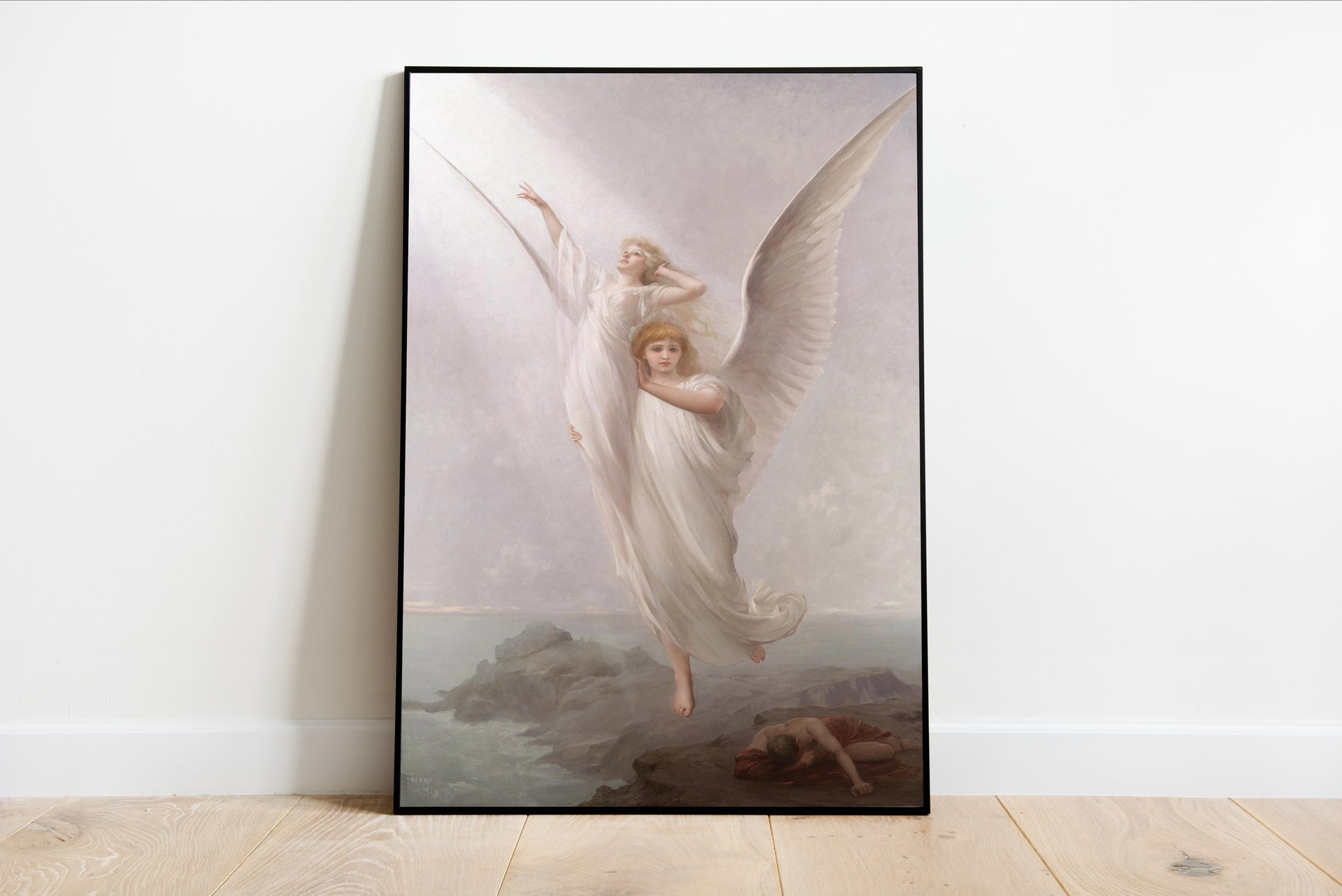 Experience the ethereal beauty of The Human Soul by Luis Ricardo Falero, a captivating fine art print that evokes a sense of mysticism and transcendence. Two angelic figures, draped in flowing white garments, soar gracefully against a soft, dreamlike background, symbolizing the ascent of the human spirit. Falero’s exquisite attention to detail and delicate interplay of light create an atmosphere that is simultaneously serene and emotionally charged. The presence of a fallen figure below adds a layer of poignant narrative, suggesting themes of redemption and spiritual awakening. This artwork is a stunning representation of late 19th-century Romanticism, inviting viewers to explore the depths of their own souls.