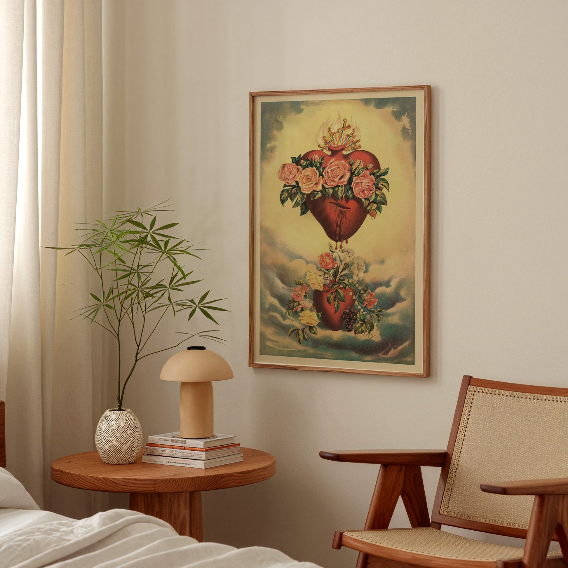 Perfect for anyone seeking a vintage Sacred Heart piece or religious art with a unique cultural touch, this heart art print brings a sense of reverence and beauty to any space. Its rich history in Mexican folk art makes it a meaningful addition to homes, churches, or collections focused on devotional artwork and sacred imagery.