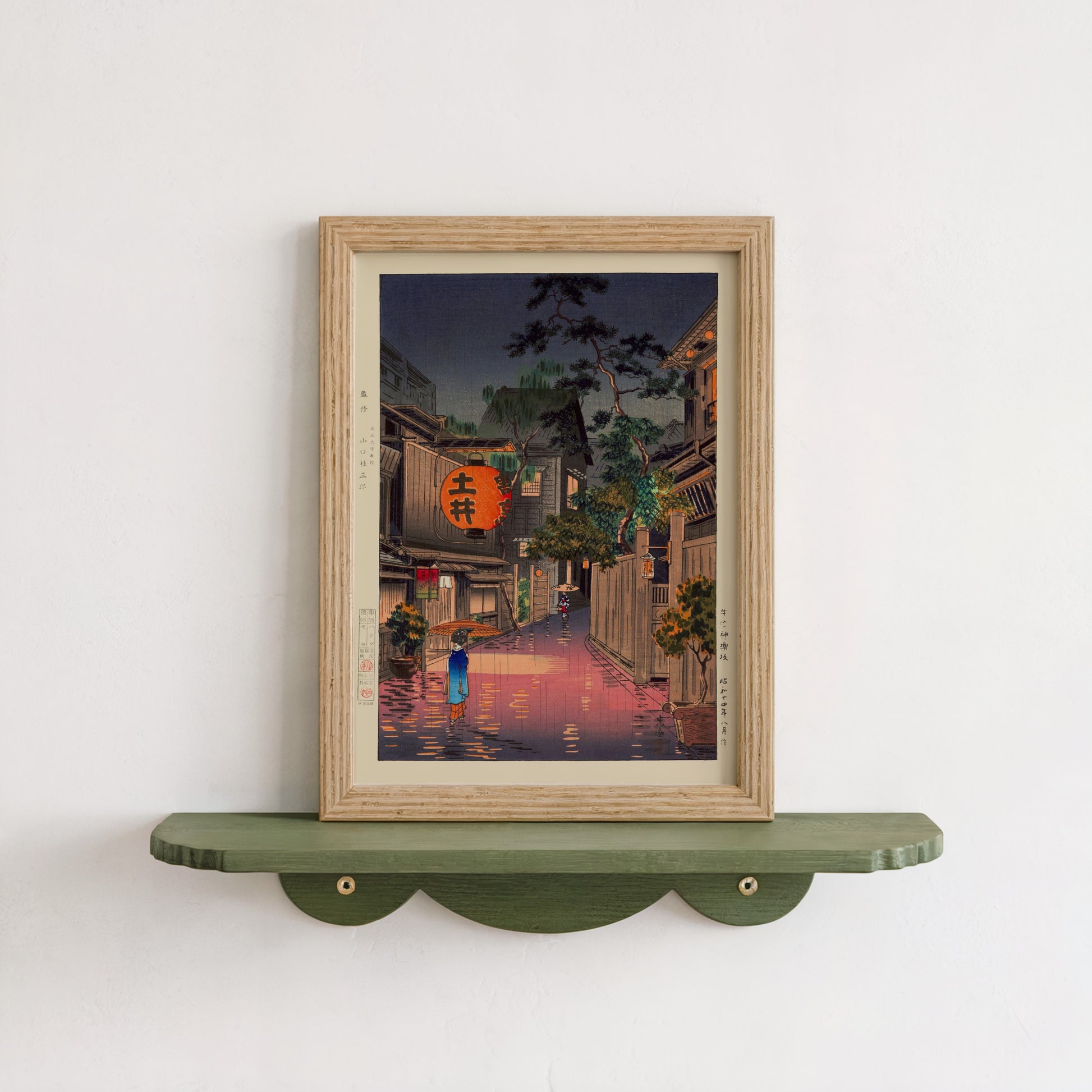 Ushigome Kagurazaka, also known as Evening at Ushigome, is a captivating Japanese woodblock print by the renowned artist Tsuchiya Koitsu. This vintage retro old piece beautifully depicts a rainy day in the bustling streets of Tokyo, capturing the serene yet dynamic atmosphere of the Ukiyo-e tradition. The delicate balance between the traditional and modern elements makes it a perfect blend of Japan Japanese art and timeless beauty.