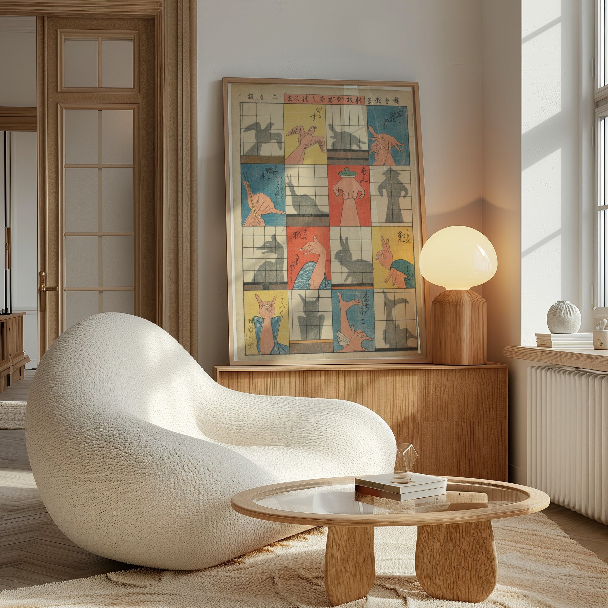 Perfect for lovers of traditional Japanese art and collectors of Japanese posters, this artwork brings a charming blend of whimsy and skillful craftsmanship into any space. With its bold colors and detailed depiction, Eight Shadow Figures is an excellent addition to any collection of Japanese woodblock prints.
