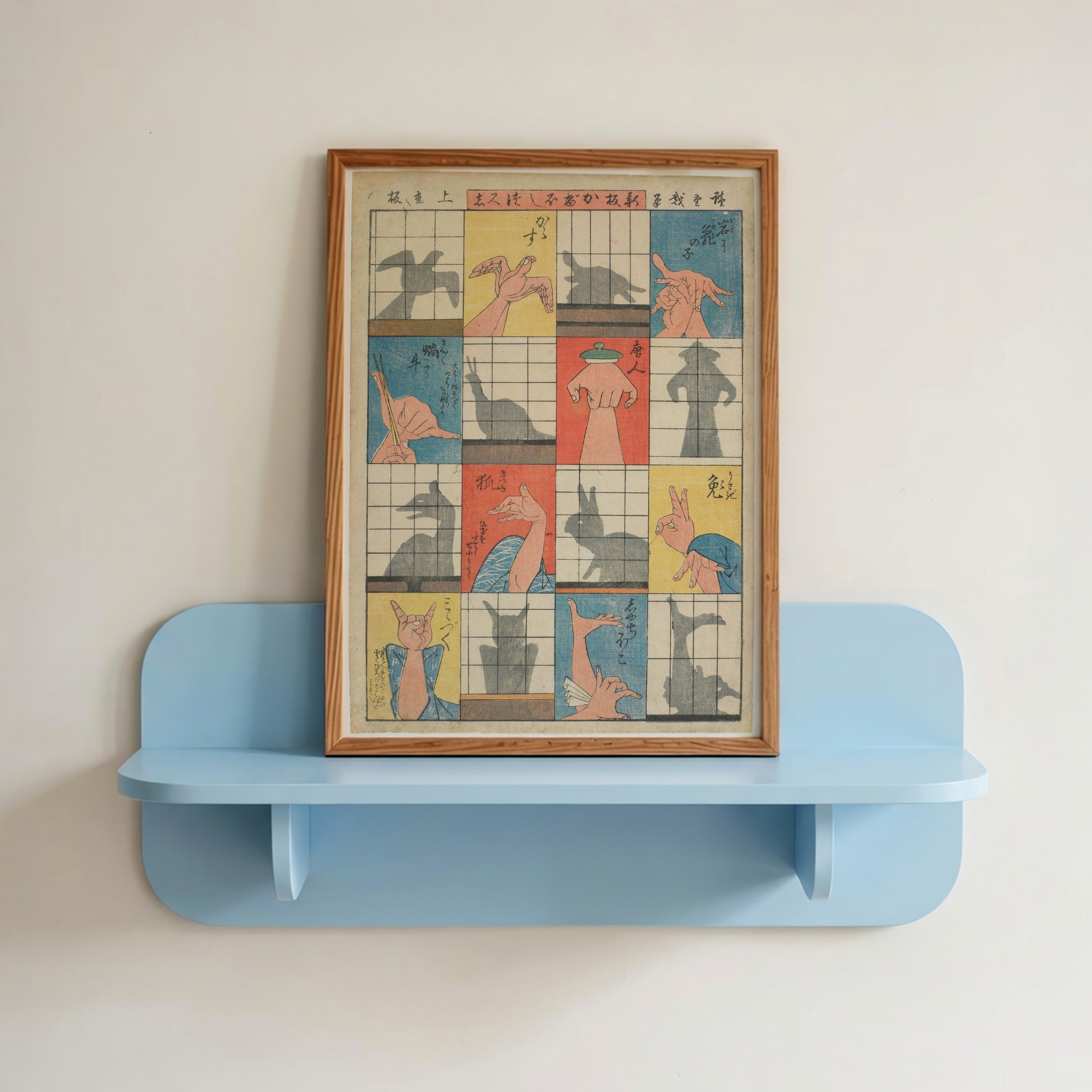Eight Shadow Figures by Utagawa Hiroshige is a captivating Japanese woodblock print that explores the art of shadow making with delicate hand gestures. This unique piece is part of the Omocha-e genre, a style of Japanese art that captures playful and imaginative themes. Featuring intricate hand figures in red and blue, Hiroshige’s print offers a dynamic and visually striking interpretation of shadow play.