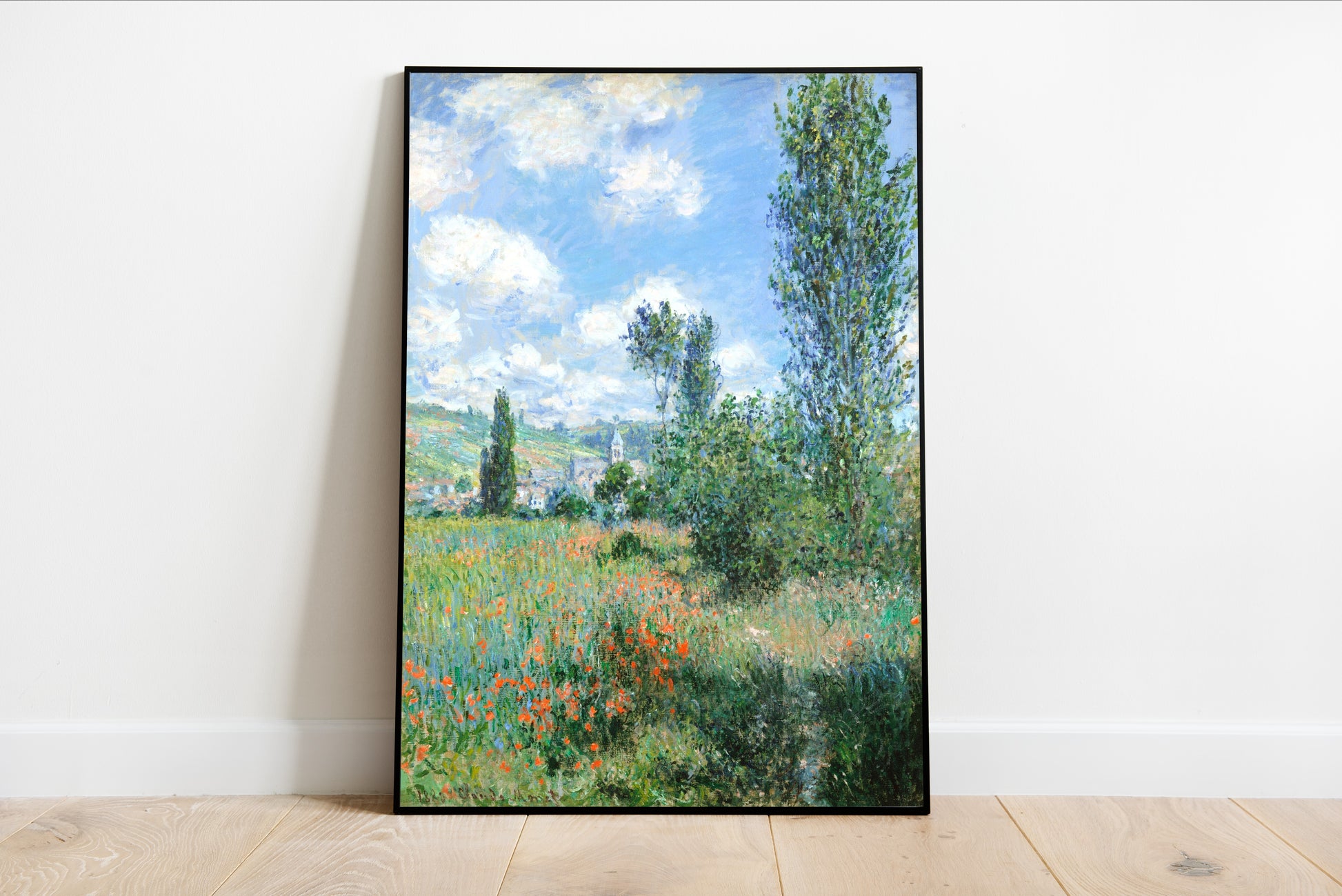 Immerse yourself in the serene beauty of Vétheuil by Claude Monet, a stunning portrayal of the French countryside that embodies the essence of Impressionism. This artwork features vibrant pops of color, with lush green fields adorned by delicate wildflowers, capturing the interplay of light and nature in a way that only Monet can. The soft, fluffy clouds and gentle waves of color evoke a sense of tranquility, inviting viewers to experience the peaceful harmony of rural life. Monet's distinctive brushwork and keen attention to atmospheric effects highlight the fluctuating moods of nature, making this piece an enchanting tribute to the fleeting beauty of the French landscape.