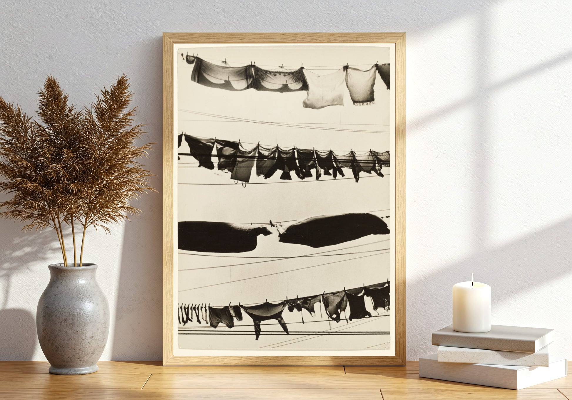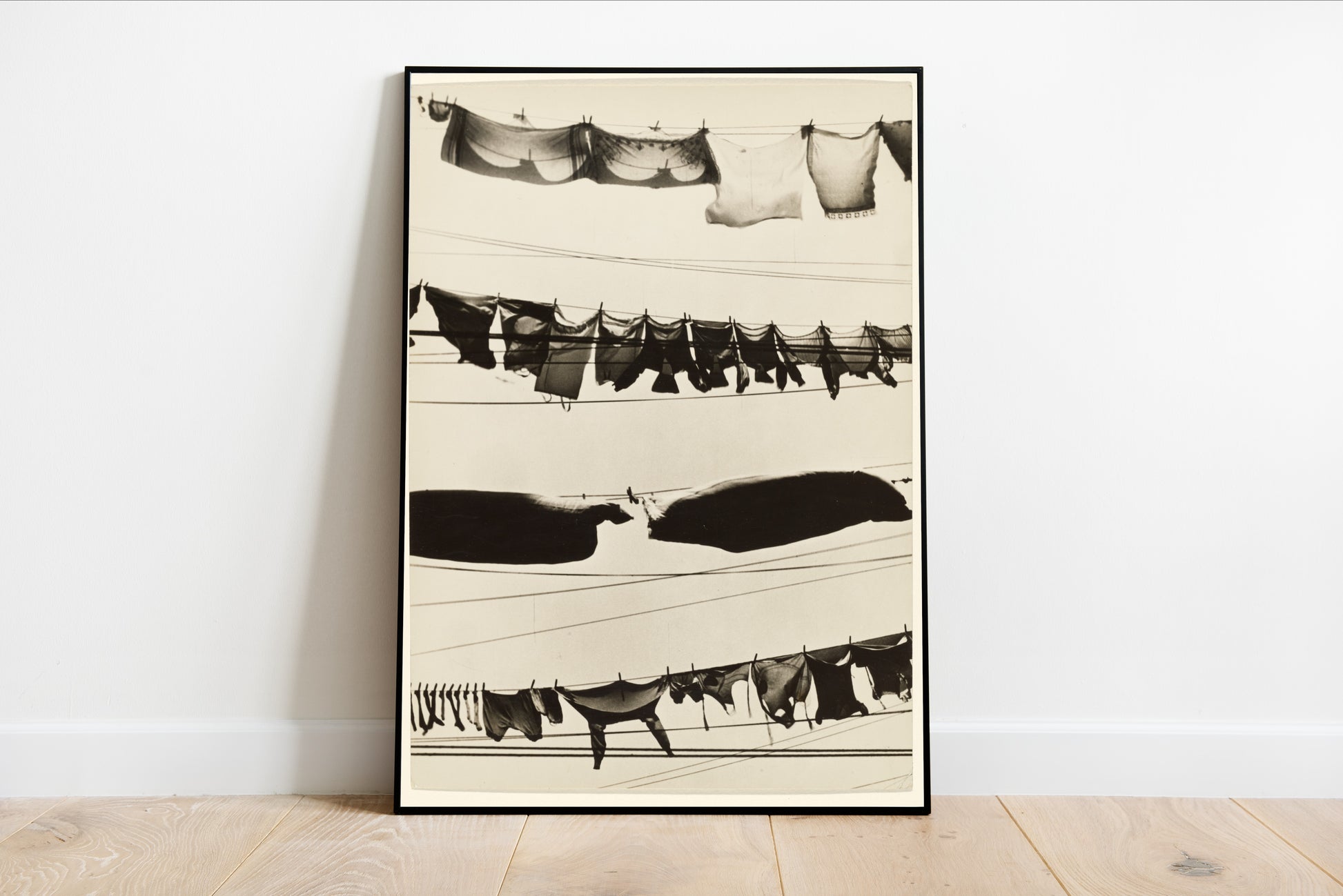 Immerse yourself in the poignant simplicity of "Wash Day" by Walker Evans, a striking photographic depiction that encapsulates the essence of everyday life during the early 20th century. This evocative image showcases an array of garments suspended against the backdrop of stark lines and gentle shadows, creating a rhythmic pattern that draws the eye. The monochrome palette elevates the mood, inviting viewers to reflect on the humanity behind the mundane task of laundry, transforming it into a moment of artistry and connection. Evans, a pivotal figure of American documentary photography, beautifully captures the tension between industrial modernity and traditional domesticity. His work not only serves to document but also to celebrate the beauty in ordinary scenes, presenting "Wash Day" as a nostalgic homage to a simpler time when life was lived in visible, tangible ways. This piece is perfect for those who appreciate photography that tells a story and captures the essence of fleeting moments.