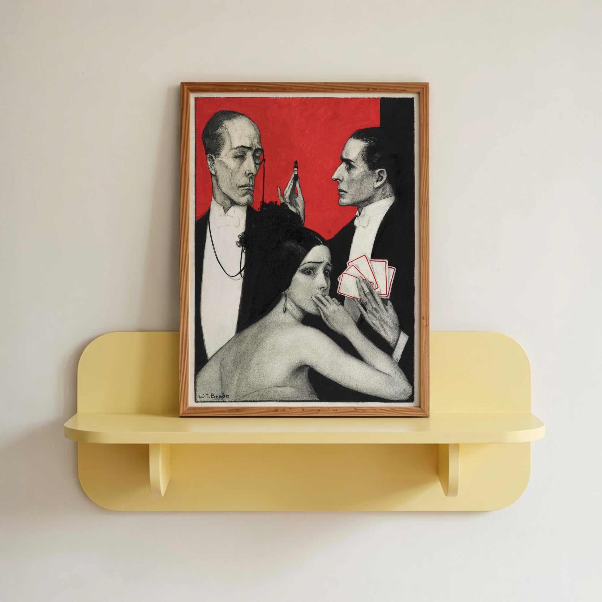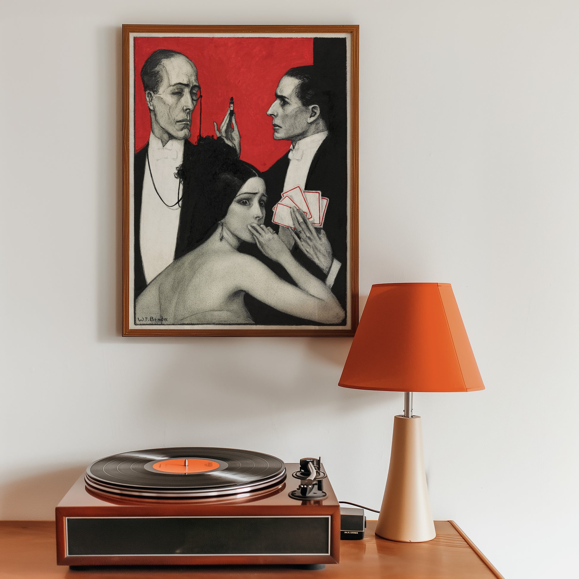 Perfect for lovers of vintage famous paintings and unique art movements, this Benda print adds a touch of moody elegance to any space. Whether you're curating a retro print gallery or looking for an impactful accent for your walls, this Art Deco classic bridges theatrical expression and timeless design.
