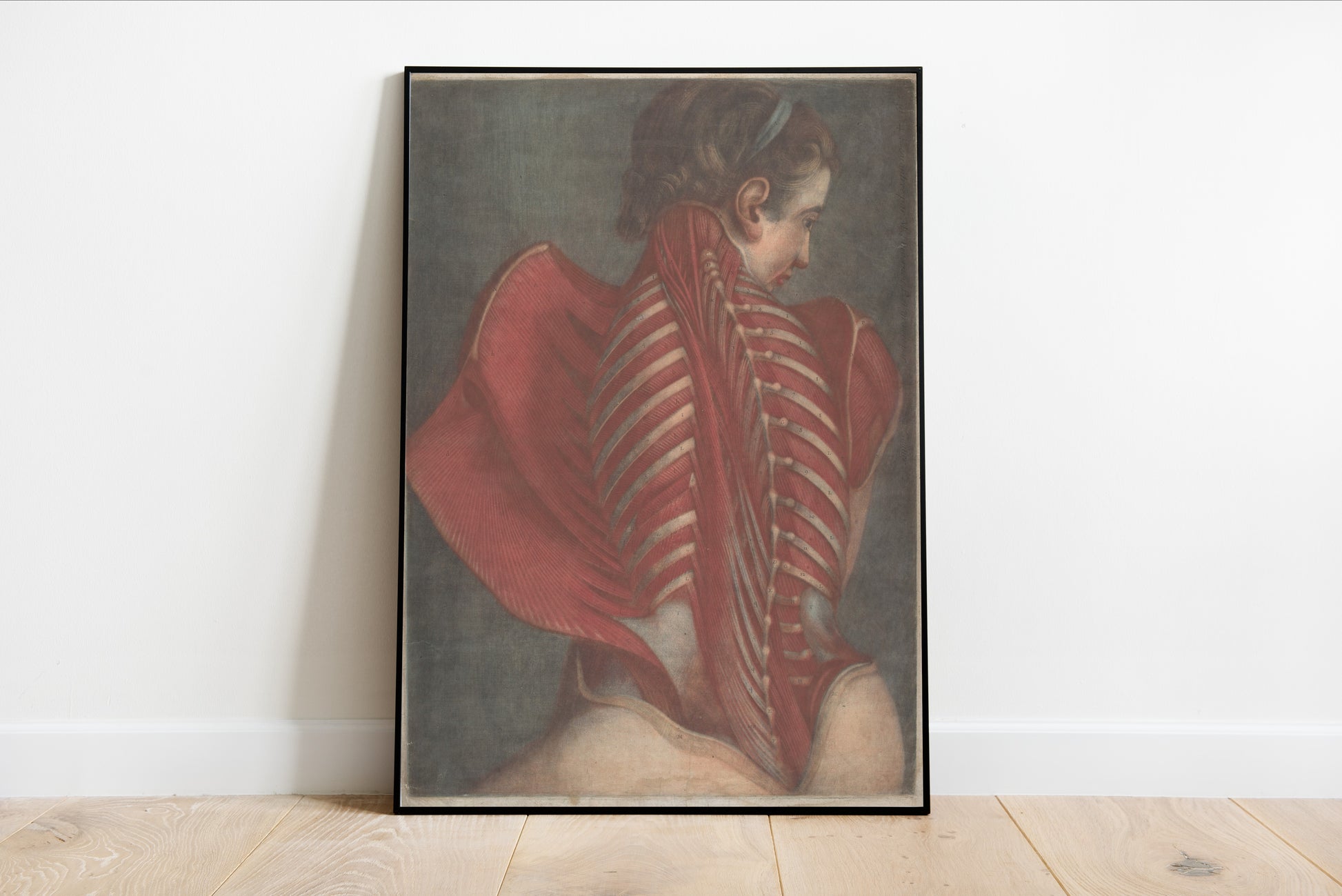 Experience the captivating intricacies of the human form with the intriguing piece, Woman's Back Dissection. This artwork presents a striking portrayal of anatomical detailing through a rich interplay of color and form, seamlessly blending both realism and artistic interpretation. The vivid red of the musculature contrasts starkly against the model's delicate skin tones and soft background, inviting viewers to ponder the relationship between art, science, and the beauty of the human body. This piece serves as a meditation on the complexities of anatomy, capturing both the strength and fragility inherent in our physical selves. Perfect for collectors of medical art or anyone fascinated by the intersection of art and human anatomy.