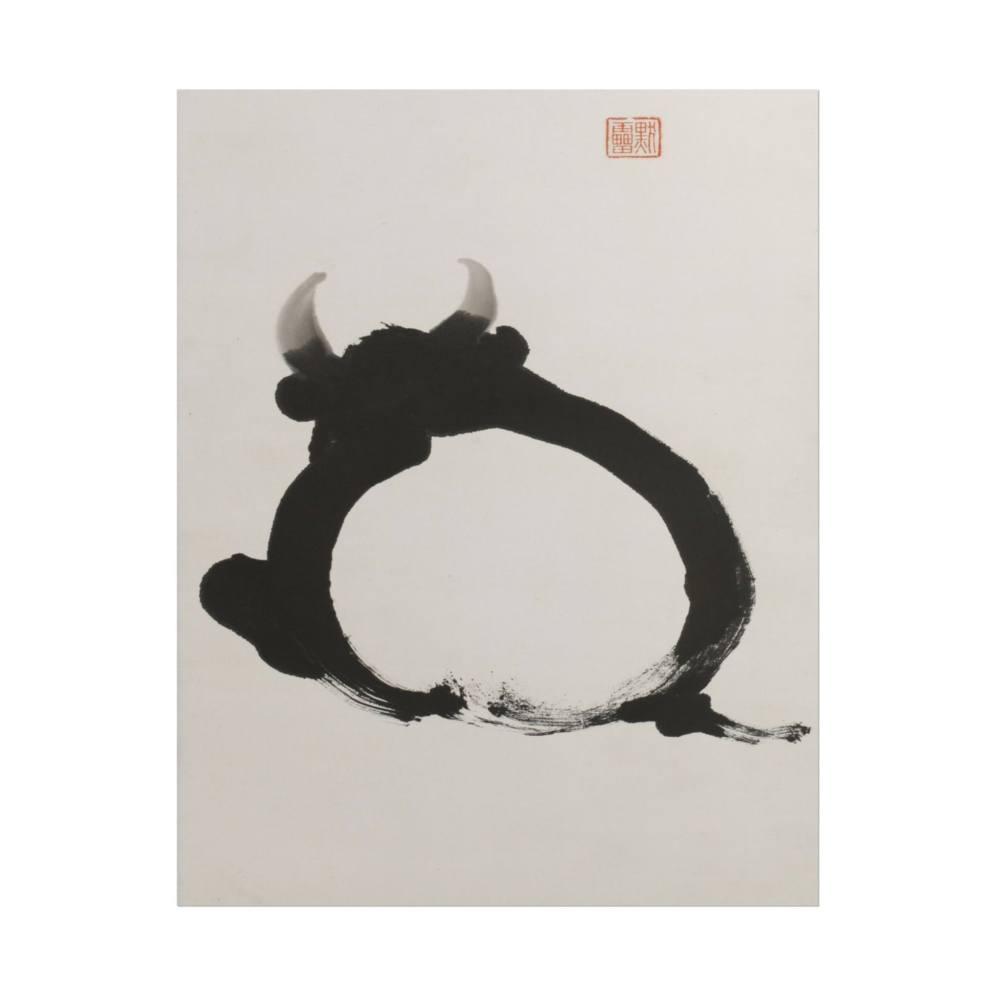 Experience the enchanting simplicity of Woodblock Ink Bull, a masterful print that evokes the elegance of traditional Japanese ink wash artistry. The bold, sweeping strokes create a striking figure of a bull, capturing both strength and grace within the confines of a circular form. The artist's use of negative space not only emphasizes the bull's powerful silhouette but also invites contemplation of its symbolic significance, often associated with determination and resilience. This artwork merges minimalism with profound meaning, making it a standout piece for lovers of Asian art and those seeking to infuse their space with a sense of calm and balance.